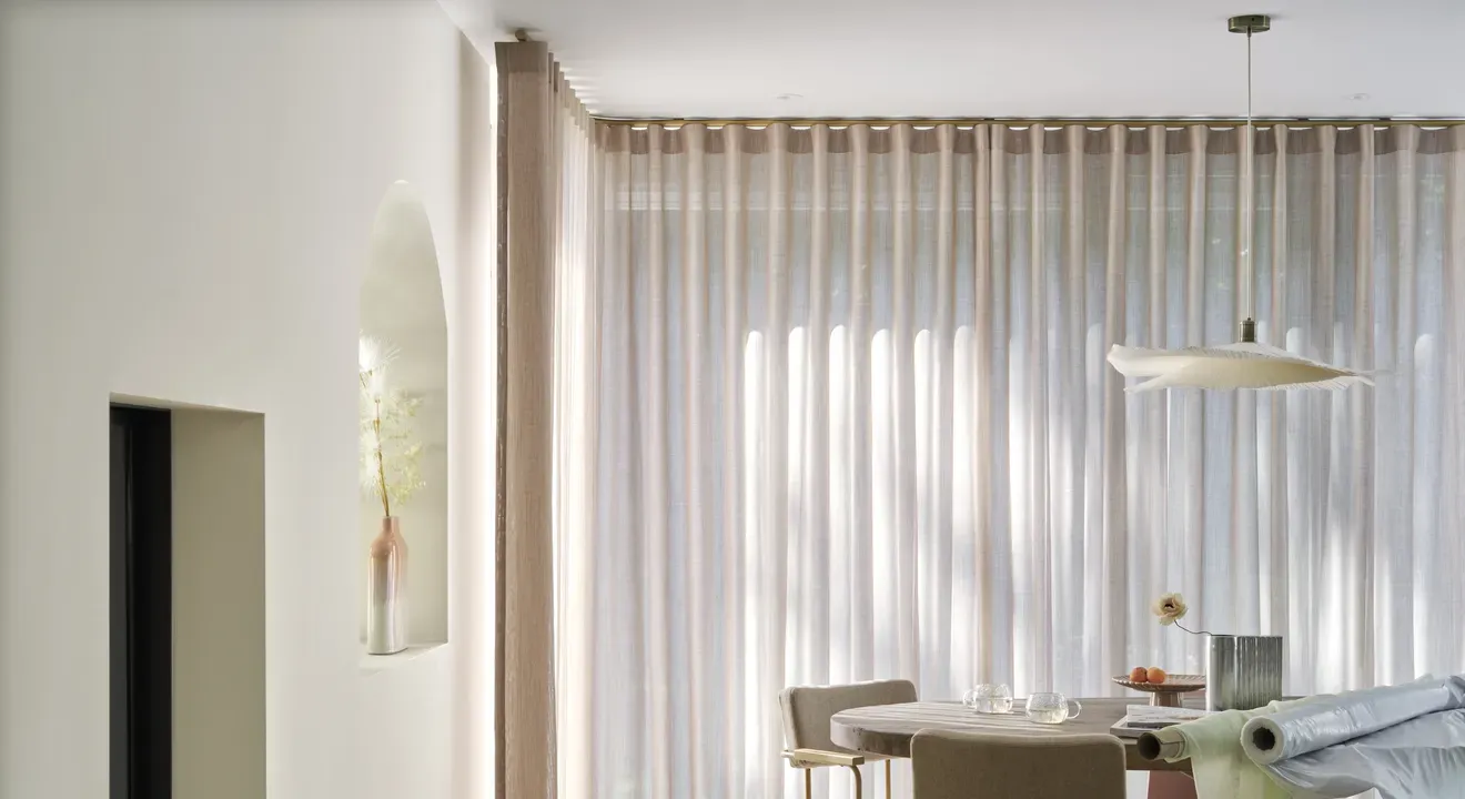 In de showroom bekijk je ELSE-stoffen op groot formaat. Je ziet direct hoe patronen uitkomen op jouw ramen en hoe ze samenwerken met plafondhoogte, lichtinval en andere materialen in de ruimte.